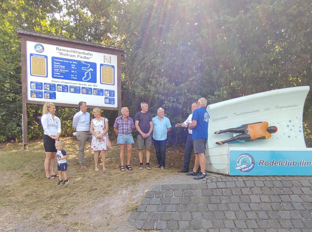 Auf der Sommertour der CDU-Fraktion besuchten der führende Fraktionsvorsitzende Prof. Mario Voigt und der CDU Landtagsabgeordnete Andreas Bühl die Rennschlittenbahn „Wolfram Fiedler“ in Ilmenau. Hier wurden die Gäste von unserem Vorsitzenden Siegbert Bussemer und unseren Vereinsmitgliedern begrüßt.