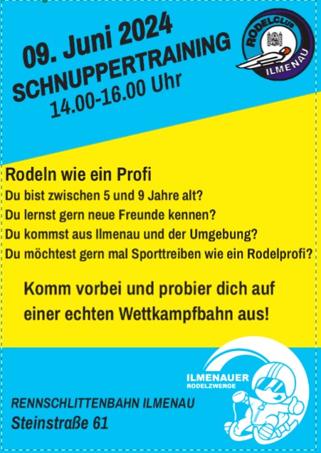 Du wolltest schon immer einmal wissen wie es ist auf einen Rodelschlitten die Wettkampfbahn hinab zu sausen? Dann komm am 09.Juni 2024 zur Rennschlittenbahn Ilmenau und teste Dich aus. Zwischen 14.00 und 16 Uhr hast Du die Gelegenheit dazu. Also komm vorbei und probiere es aus. Wir freuen uns auf Euch!